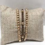 Pulsera con cuarzo grisáceo y piezas de acero. Colgante de acero en forma de estrella engarzada en hilo de naylon gris. Se puede regular el tamaño.